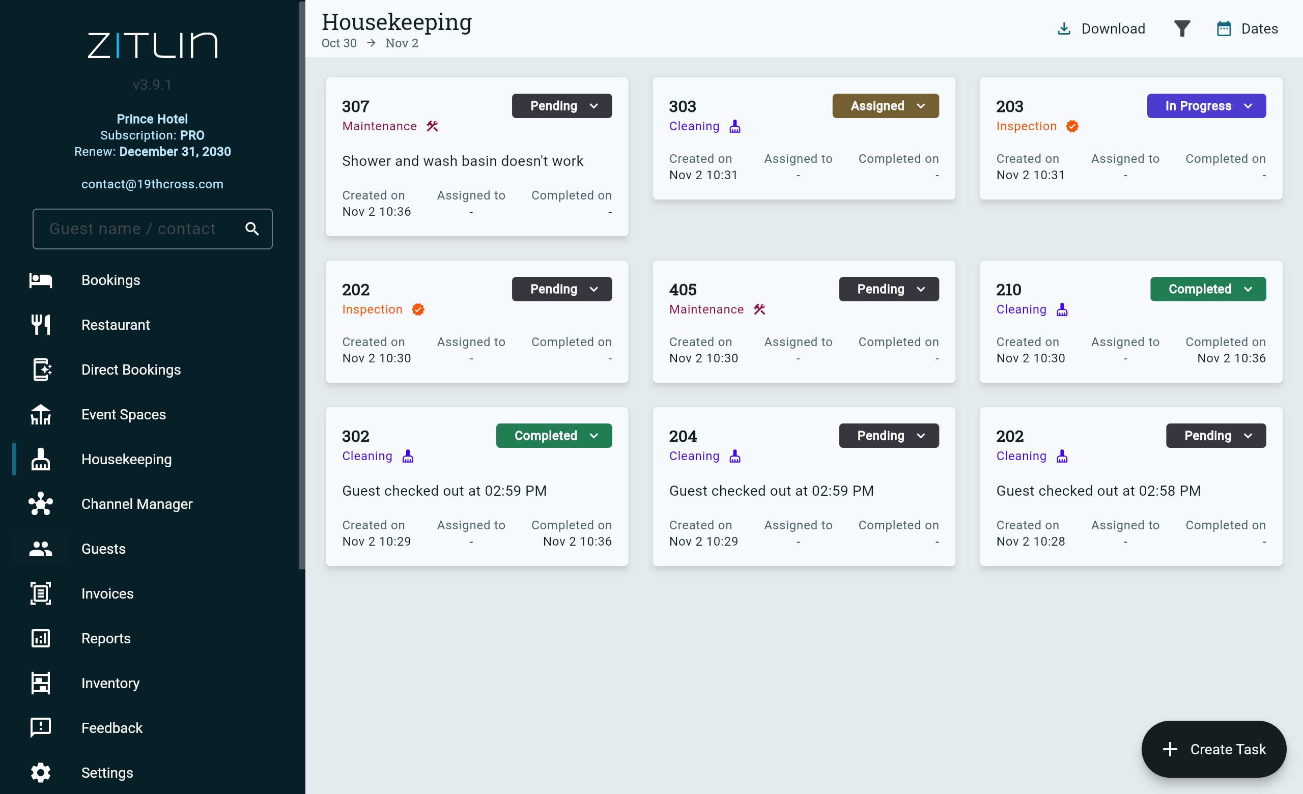 Beyond daily cleaning, Zitlin’s housekeeping feature allows you to manage a wide range of tasks to keep your property in pristine condition.